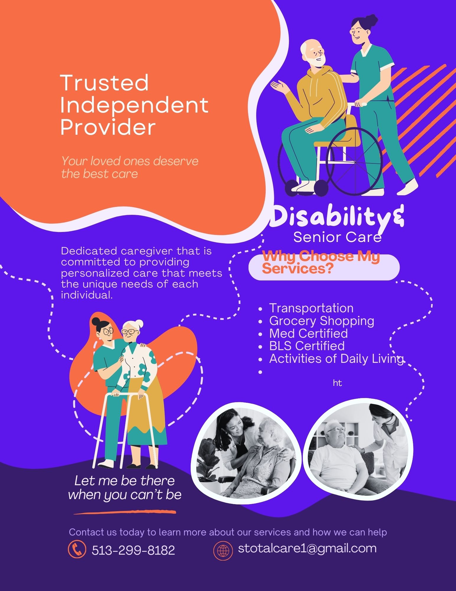 We are dedicated to enriching the lives of seniors and their families with customized care solutions that prioritize comfort, dignity, and independence. Serving the Dayton, OH community, S Total Care takes pride in offering a wide range of services backed by compassion and a commitment to quality. Whether your loved one needs attentive home health care or specialized personal care services, our skilled team is here to help. We provide assistance with daily tasks such as bathing, dressing, and mobility to ensure every client maintains safety and comfort at home. Our caregiver service is designed to create meaningful connections, offering not only practical help but also emotional support. For seniors seeking social interaction and companionship, our companion care service delivers enriching experiences that lift spirits and combat loneliness.